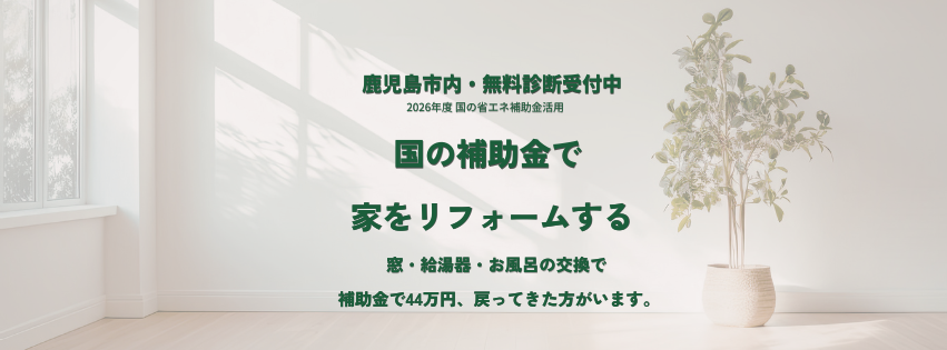 補助金を「使える」と言う業者は増えました。 でも申請の実務まで対応できる業者は まだ多くありません。 私はリフォームの現場を25年見てきました。 施工の品質・申請の手続き・アフターまで ワンストップで対応できるのは その経験があるからです。 鹿児島市内限定で無料診断を受け付けています。 まずは話だけでも構いません。